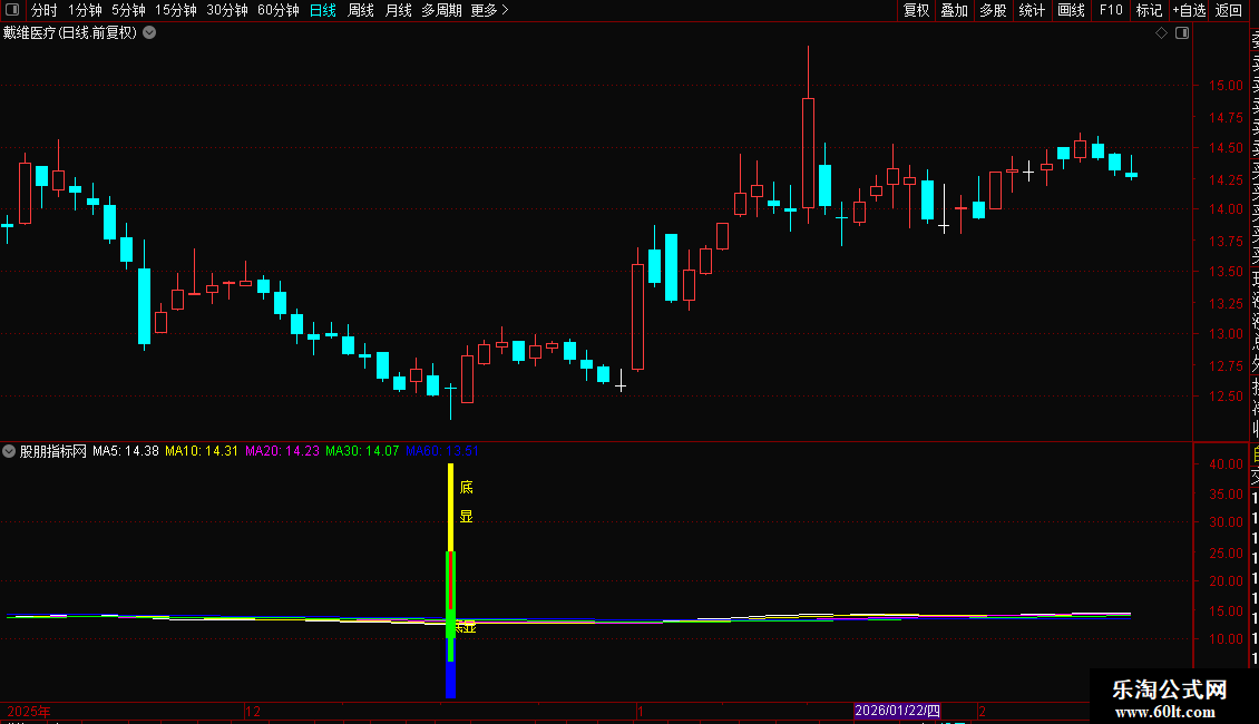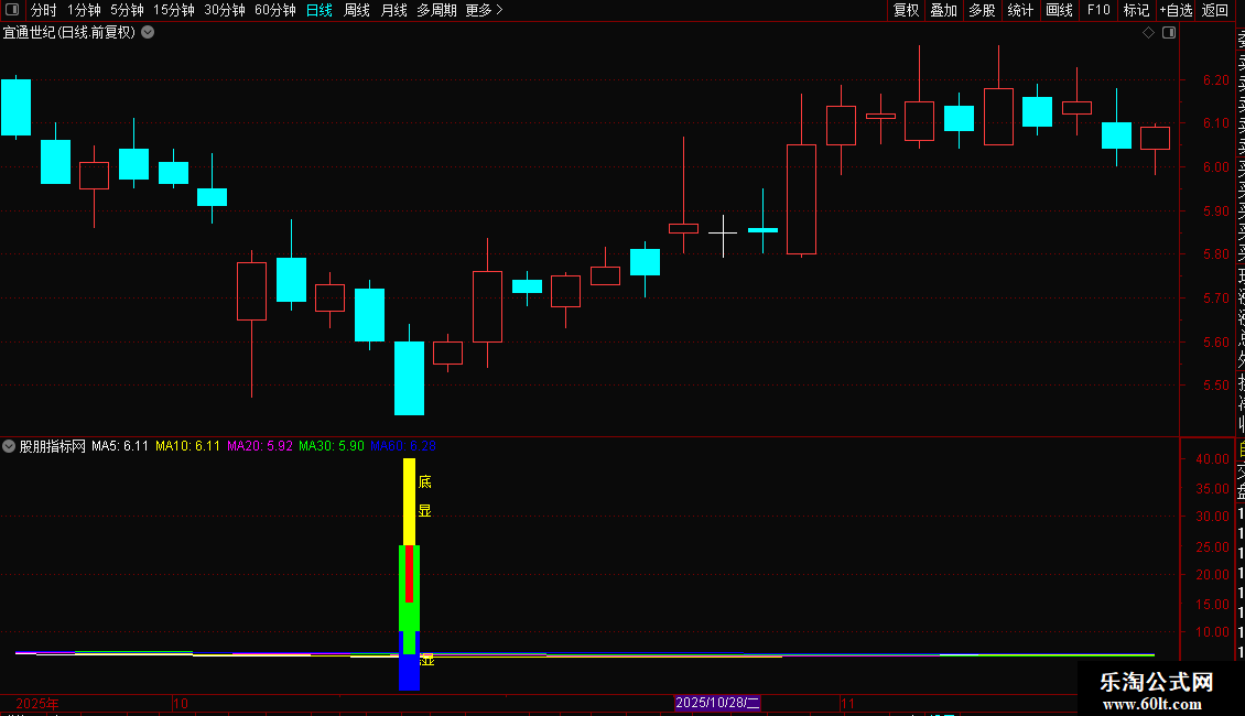 DRAWTEXT(FILTER(DX=1,5),36,' 底'),COLORYELLOW;