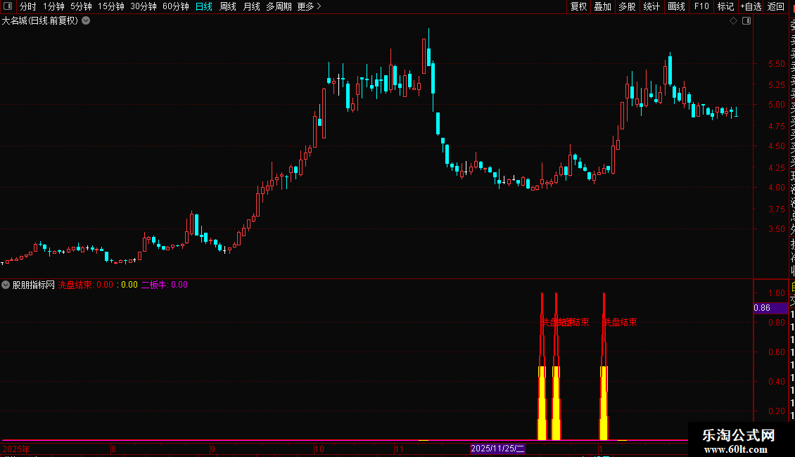 洗盘结束:IF(VAR6,1,0),COLORRED,LINETHICK2;
