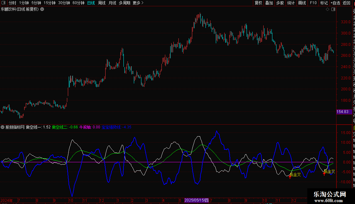 做空线一:EMA(CLOSE,BAO1)-EMA(CLOSE,BAO2),COLORWHITE;