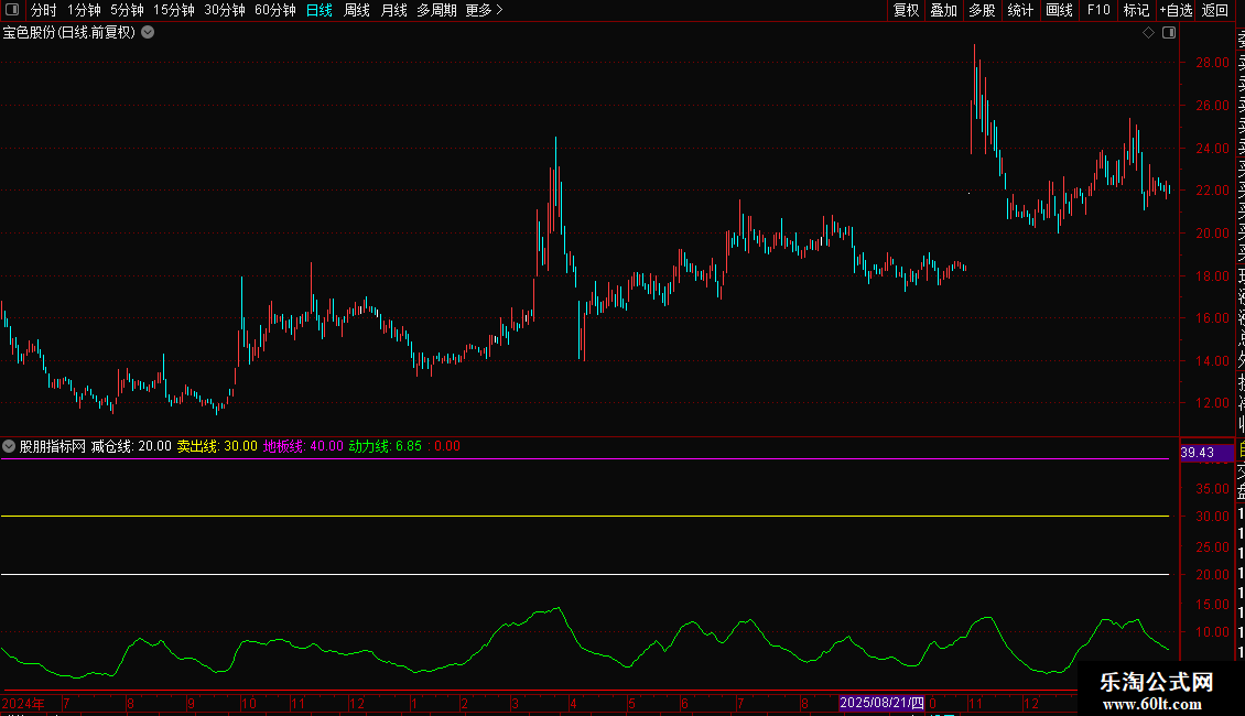 IF(REF(动力线,1)<0.35 AND CROSS(动力线,REF(动力线,1)),1,0),COLORRED;