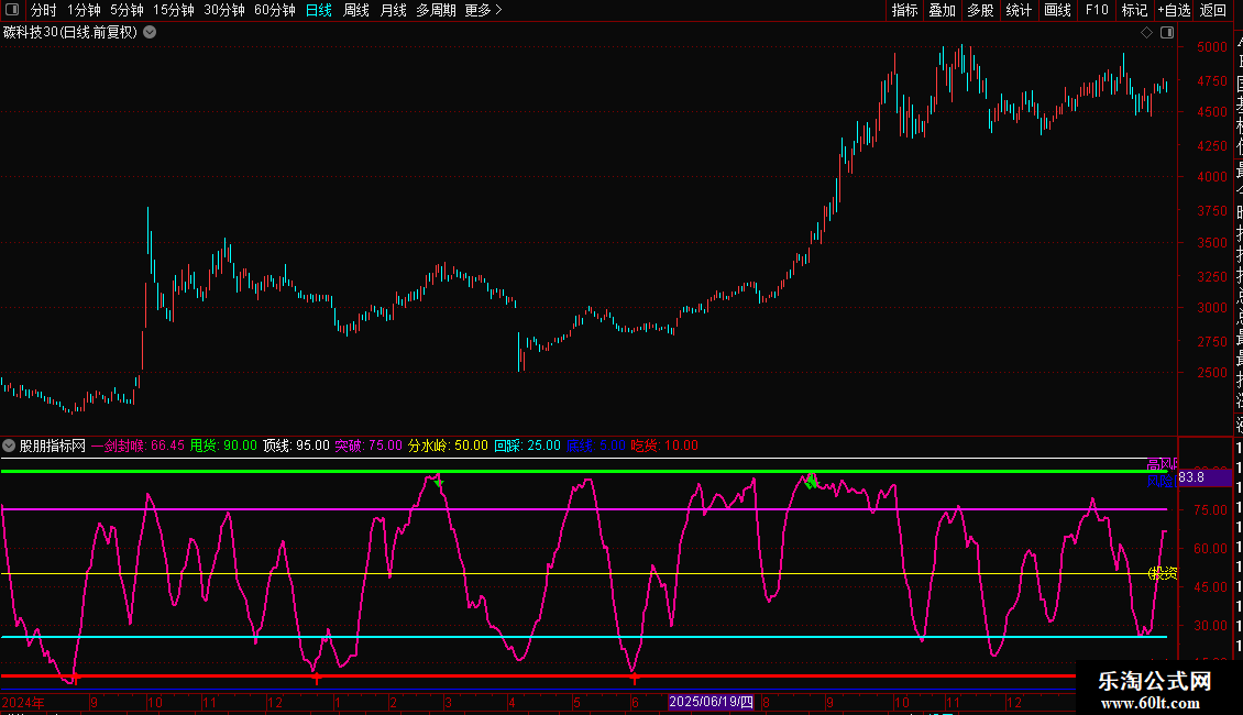 DRAWTEXT(CURRBARSCOUNT=7,93,'高风险区'),COLORF00FF0;