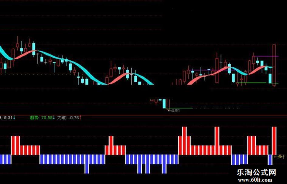 DRAWTEXT(CLOSE>=MA1 AND ISLASTBAR,1,'←多↑'),COLOR00FFFF;