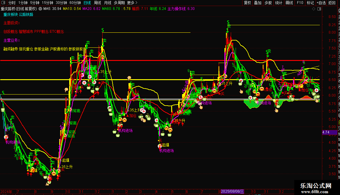 门头线:=REF(HHV(浮平线,20),1),COLOR009000,LINETHICK2;