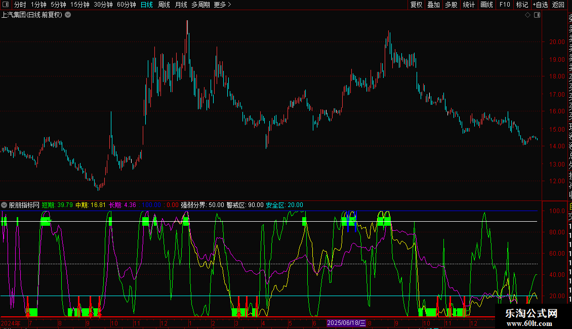 STICKLINE(短期>90 AND 中期>70,86,94,1,0),COLOR00FF00;