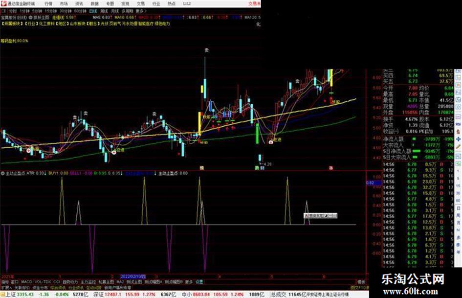 通达信主动止盈点副图指标公式量化交易模型 源码