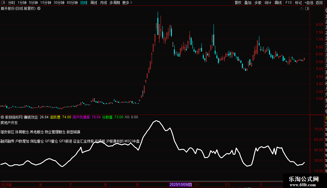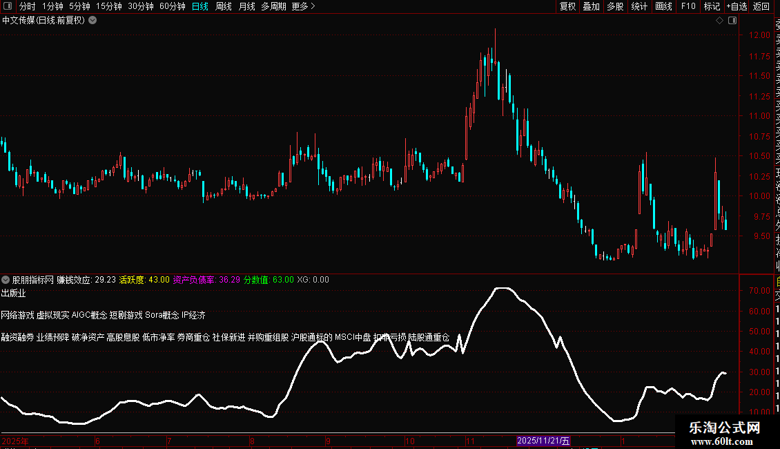 赚钱效应:IF(DLYZZ>38,DLYZZ,DLYZZ*1.3),LINETHICK3;