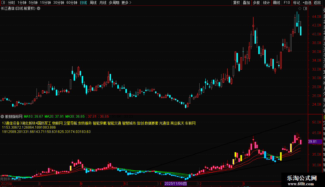 {指标介绍:随着主图10日20日30日k线逐步变红,分步上车;反之,主图10日20日30日k线逐步变绿,分步下车。