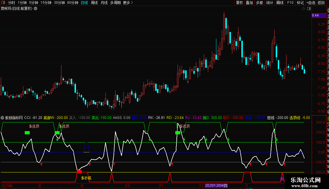 DRAWTEXT(中线>-3.5,逃顶线+220,'逃'),COLORGREEN;