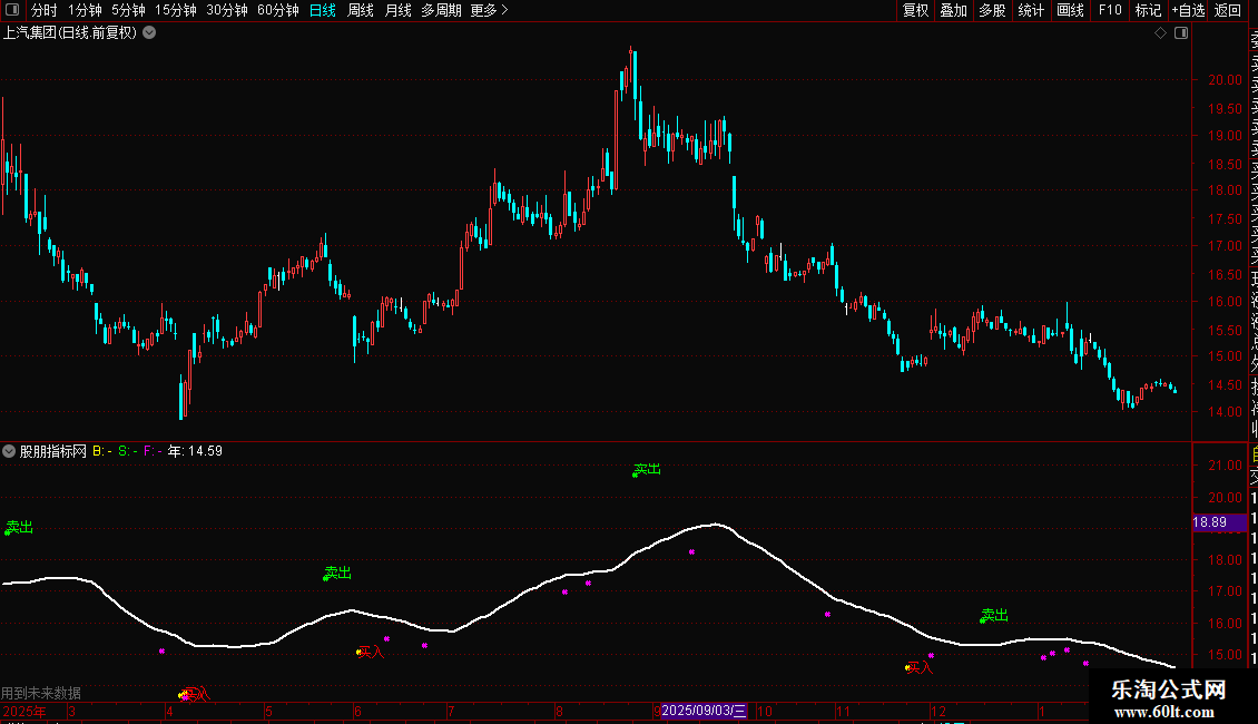 DRAWTEXT(卖1>0,HIGH*1.02,'卖出'),COLORGREEN;
