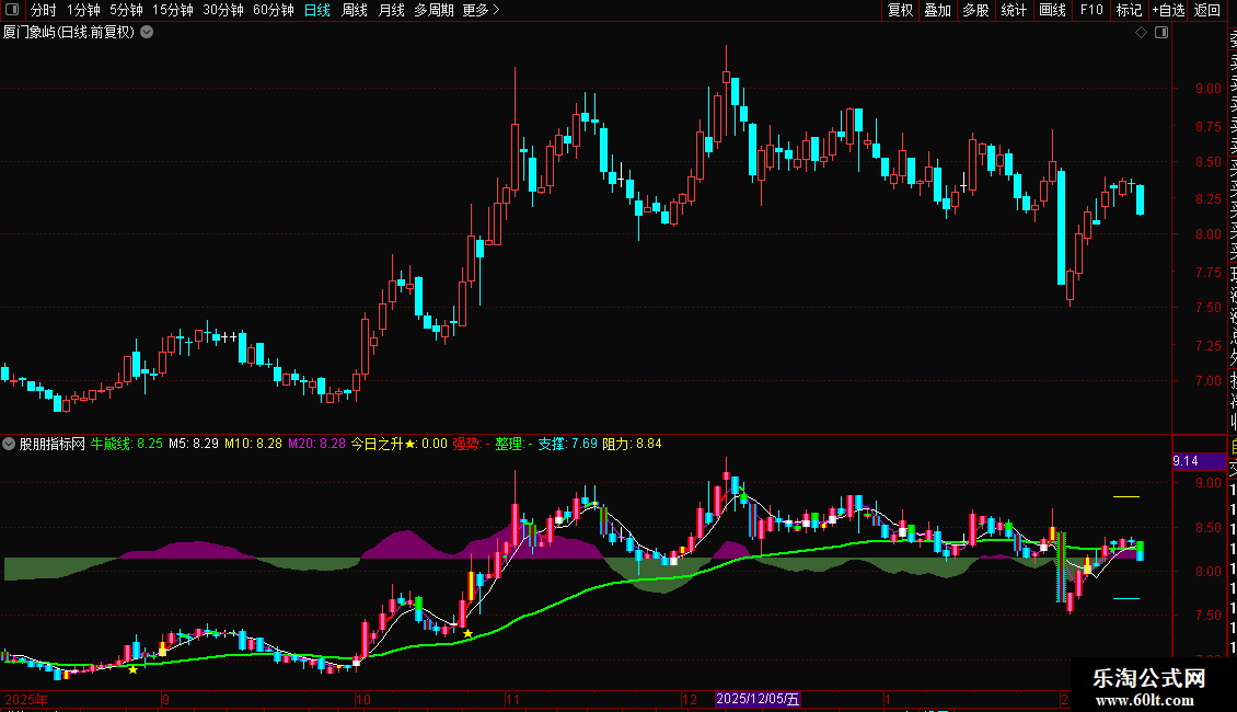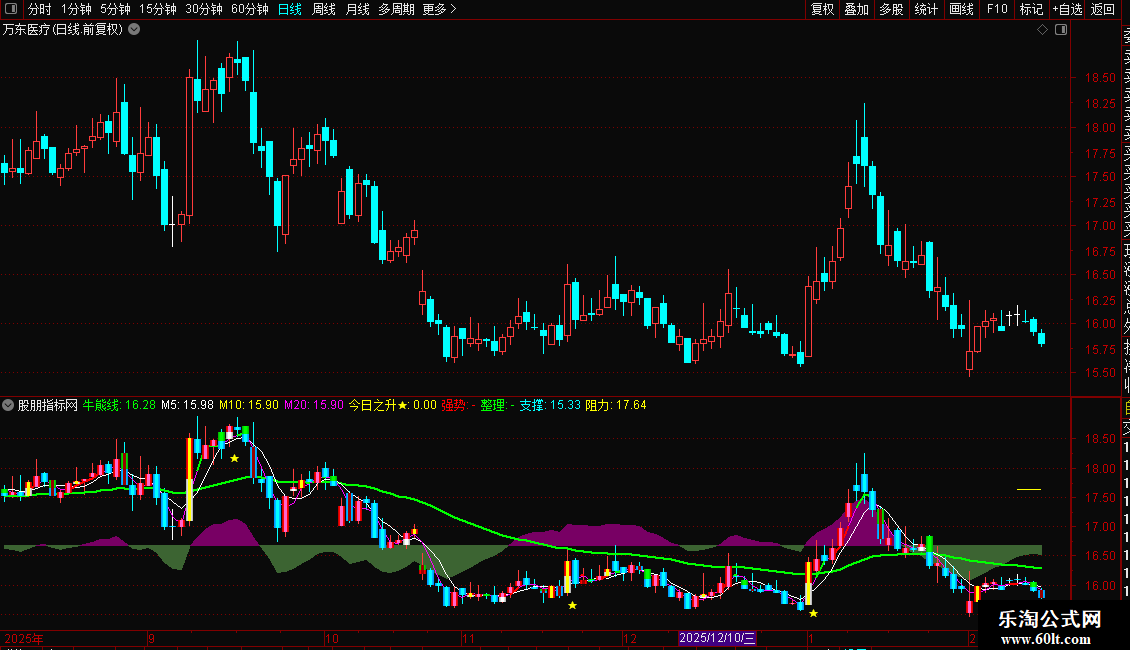 2、绿色牛熊线之上中线看涨,之下看空,清晰明了。