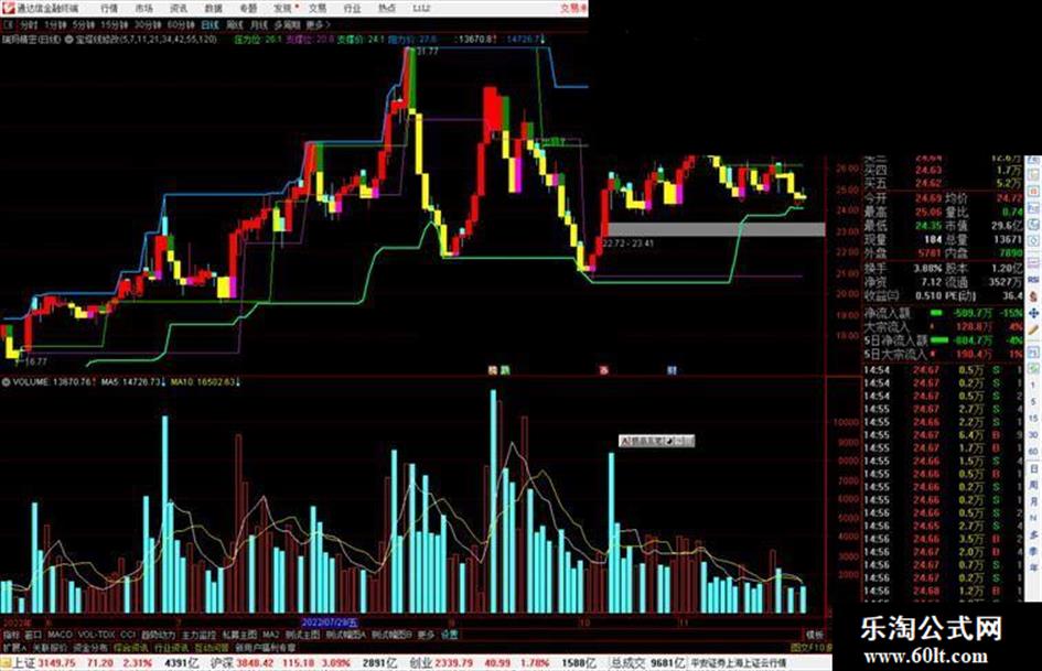 压力位:IF(crOSS(J24,J),H,REF(H,BArslAST(CROSS(J24,J)))),COLOR00FF33,LINETHICK1;