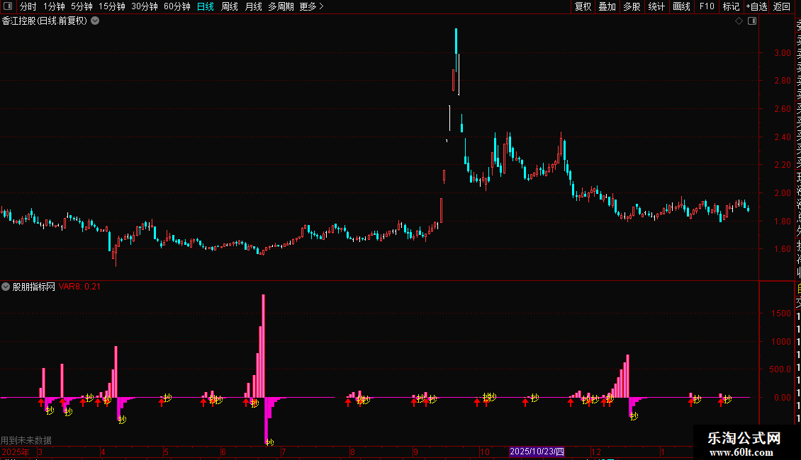 VAR6:=IF(VAR5>REF(VAR5,1),VAR5,0),COLORRED,NODRAW;