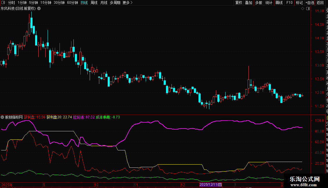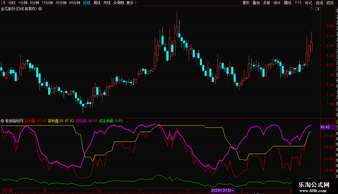 输出成本乖离:(收盘价/获利盘为50%的成本分布-1)*100