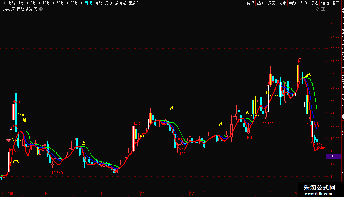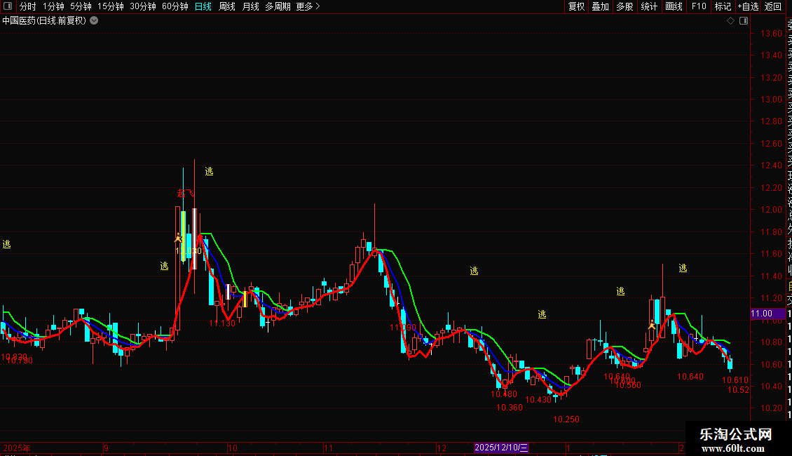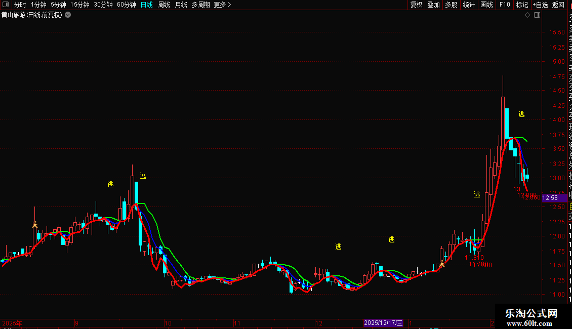 DRAWTEXT(COUNT(M3<M1 AND M3<M2 AND EVERY(L<MA(C,5),3) AND C<MA(C,5),2)>=1 AND COUNT(M3<M1 AND M3<M2 AND EVERY(L<MA(C,5),3) AND C<MA(C,5),2)<=1 AND C<MA(C,5) AND EVERY(C<MA(C,5),2) AND NOT(M3=M1 AND M3=M2),H*1.05,'逃')COLORYELLOW,LINETHICK3;