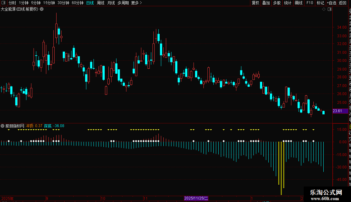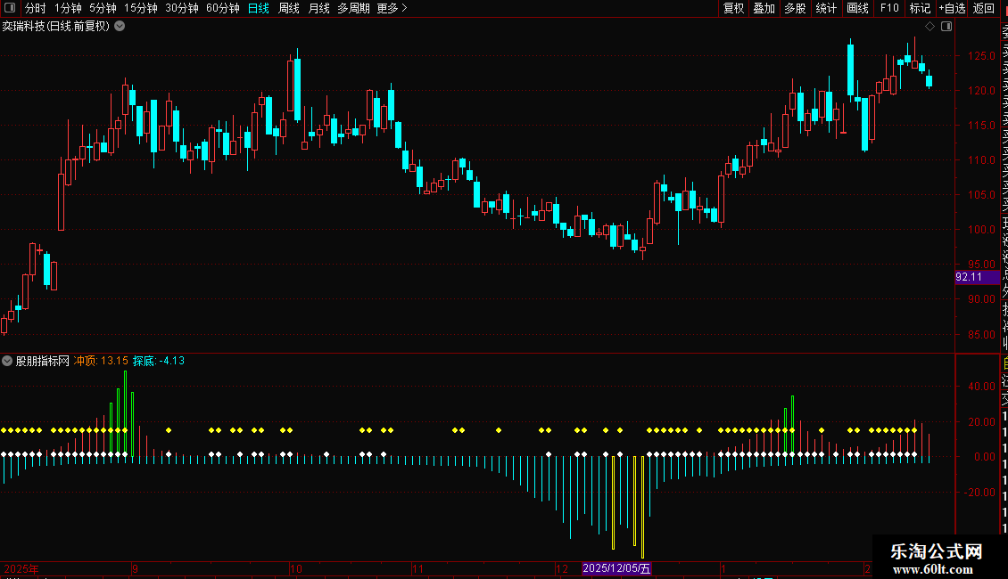 IF(冲顶差值>=0,15,DRAWNULL),COLORYELLOW,CIRCLEDOT;