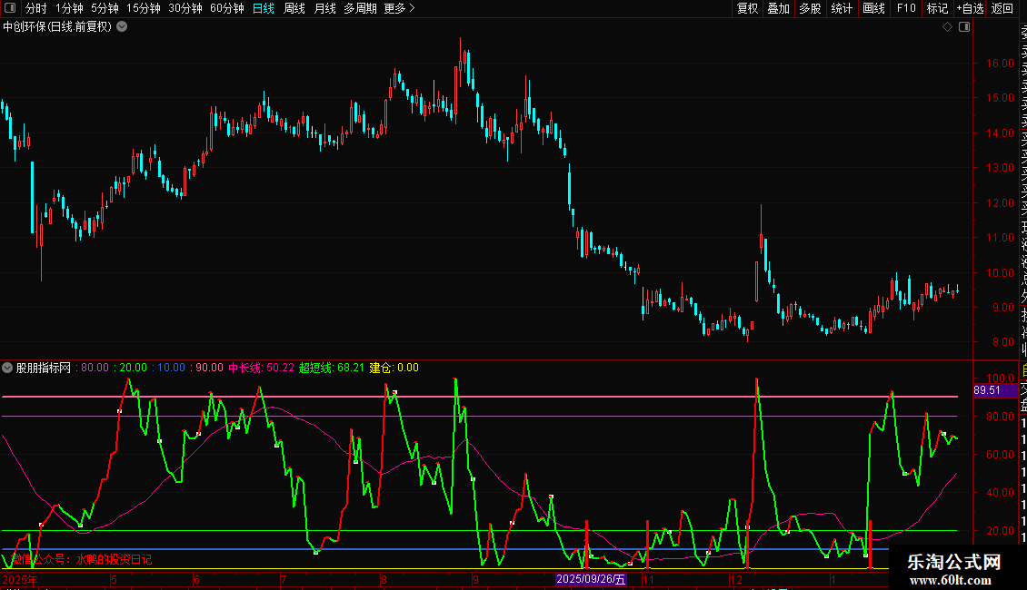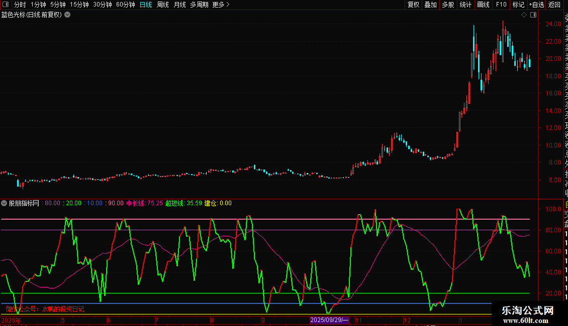DRAWTEXT_FIX(C>O,0.01,0.9,0,'微信公众号:水鸭的投资日记'),COLORRED;