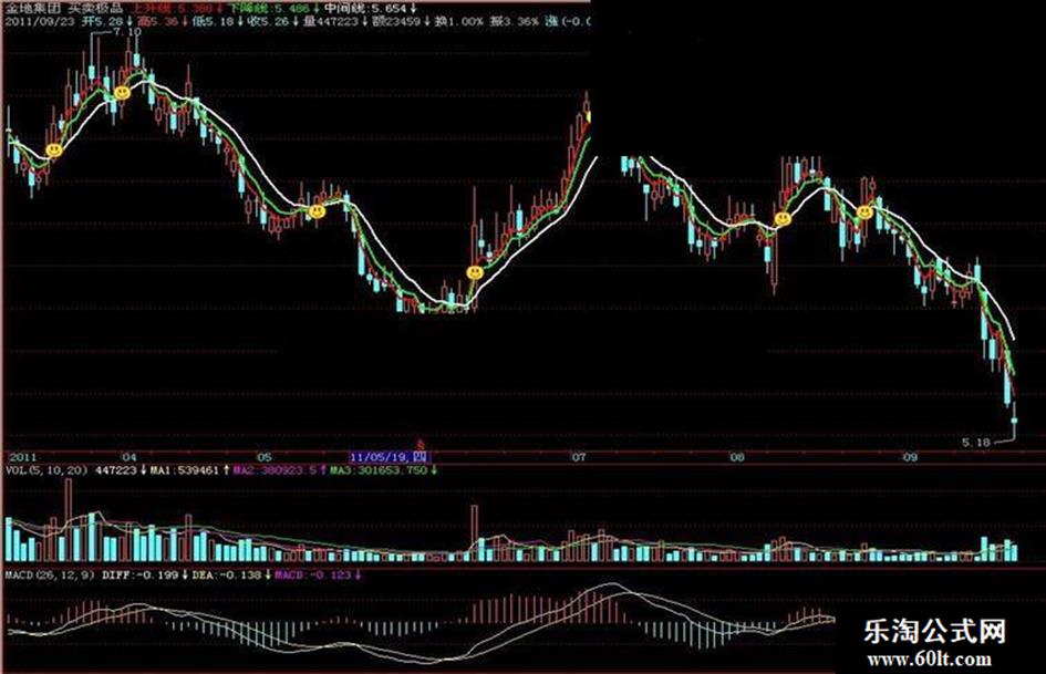 下降线:ema(c,5),color00ff00,linethick2;