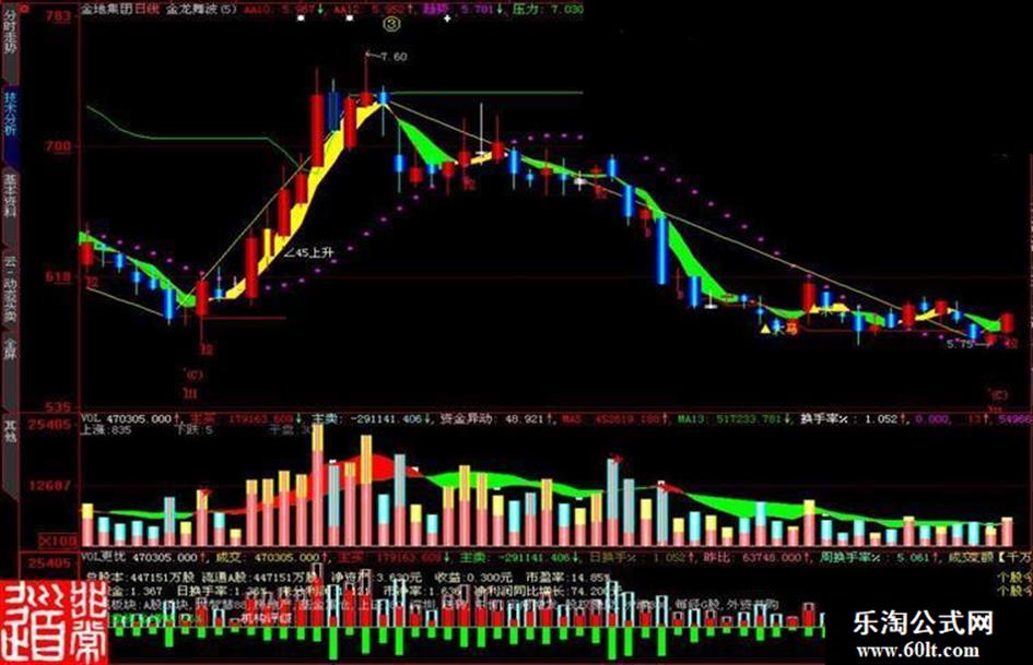 主卖:IF(CLOSE>OPEN,0-VAR1*((HIGH-CLOSE)+(OPEN-LOW)),IF(CLOSE<OPEN,0-VAR1*(HIGH-LOW),0-VOL/2)),COLOR00FF00,POINTDOT;