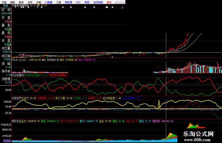 bs操盘线(主图)发出买点指示,多空能量线多方战胜空方,抄底信号指标发出买入信号,博弈资金指标显示主力资金入场,四共振抓住牛股启动点