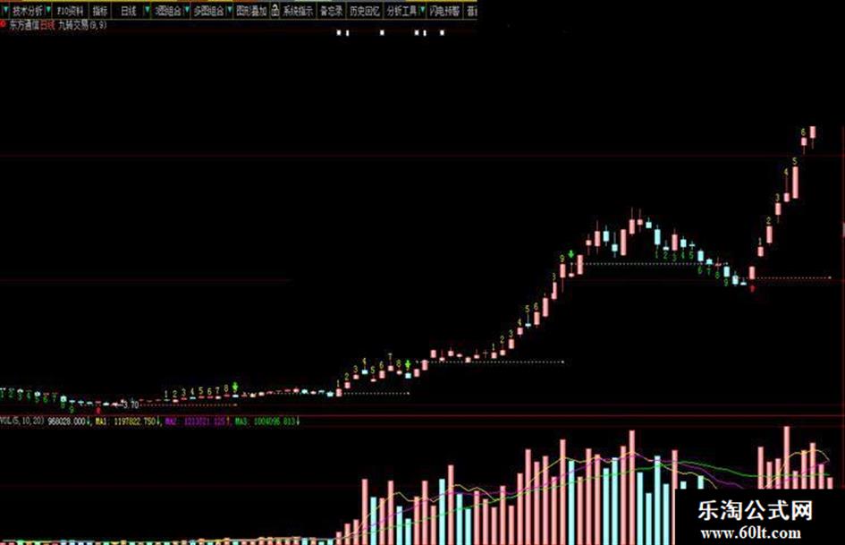 大智慧的系统指标导入后大多不能显示,分享一个导入后能用的九转指标
