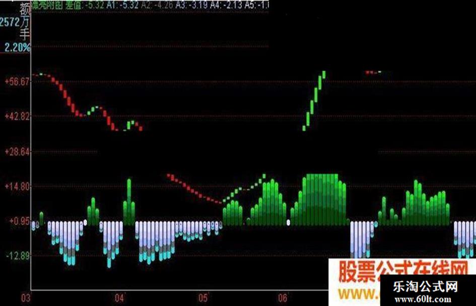 a5:IF(差值>=0 ,0 ,差值*0.2 ,4 ,0),STICK,linethick5, COLORFFDDDD;a6:IF(差值<=0 ,0 ,差值*1 ,4 , 0),STICK,linethick5,colorgreen;