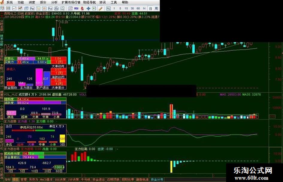 段时间看到坛子里朋友们对资金看盘公式指标大感兴趣,自已在网上找了一个《看盘加强板的》的指标,仿着坛子里朋友们发的图片,组成了以下一主三副的四个资金模块。喜欢花哨画面,对资金感兴趣的朋友拿去吧,编辑公式水平不高,对通达信的L2资金也不太清楚。所以难出错的地方,不对的欢迎指导。