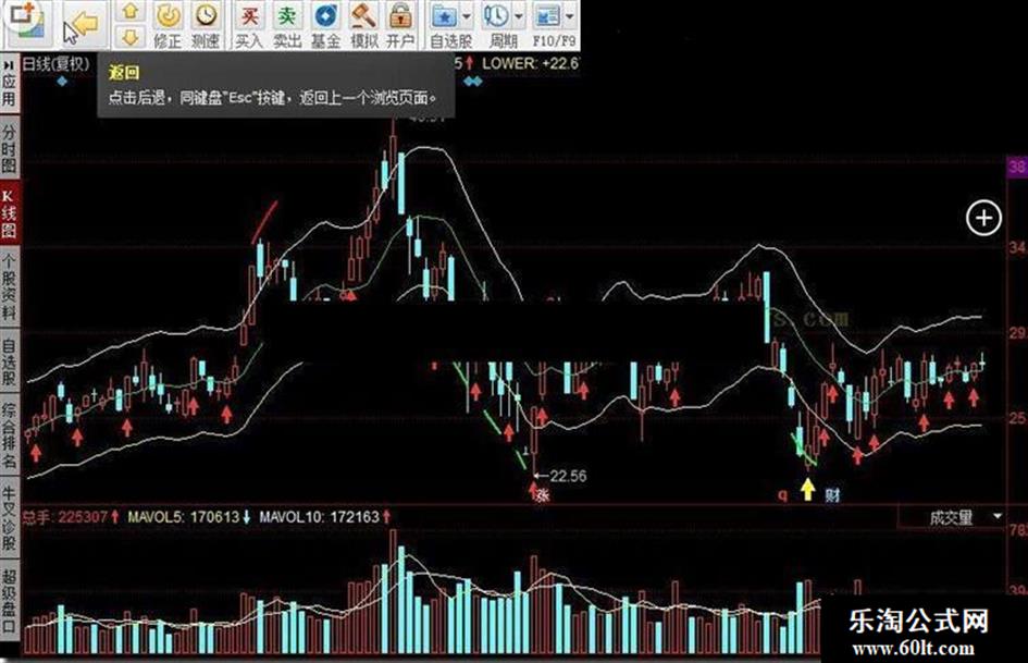 超卖:IF(CLOSE<LOWER AND CLOSE<UPPER,超卖a,DRAWNULL),colorgreen,LINETHICK2;