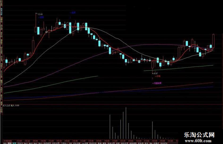 买入公式没有未来,配合有道均线使用.指标出现黄柱子,探明主力已经进场,发现踪迹.柱子越高越好,呵呵