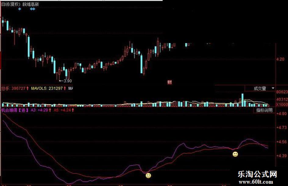 低位粉线对红线金叉时买入,如果此时配合股价止跌企稳把握更大。