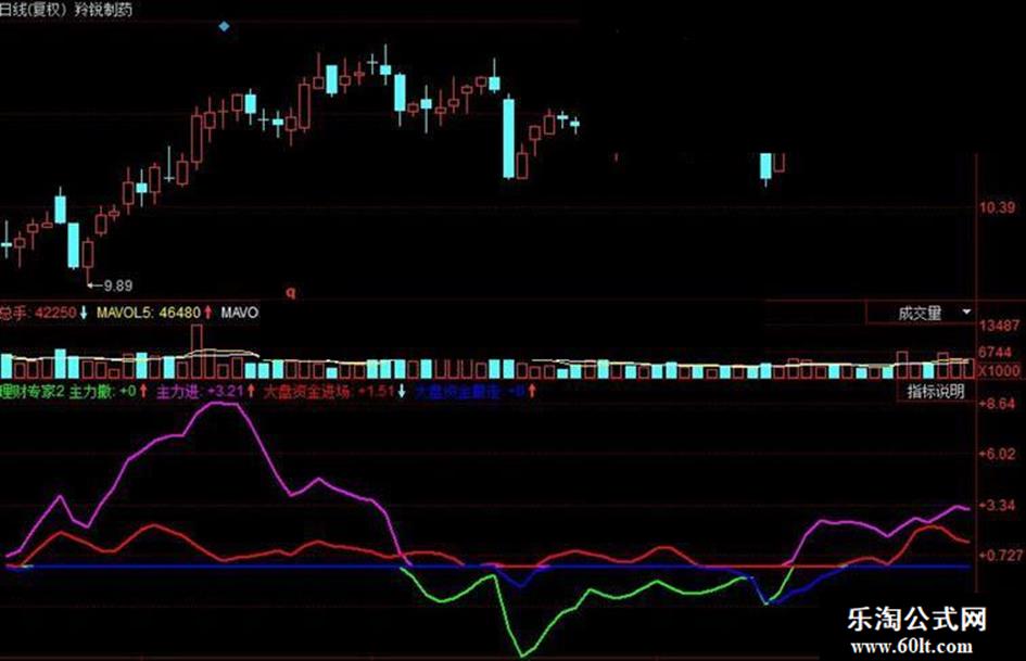 主力进: IF(V4>=0,V4,0),COLORFF00FF,LINETHICK2;