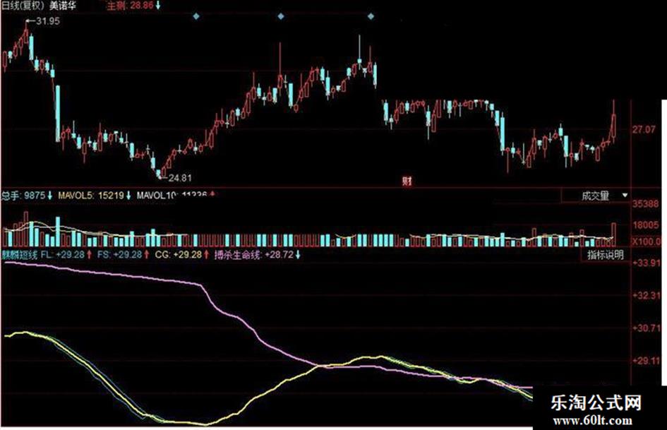 搏杀生命线:IF(VAR5/REF(VAR5,1)>1.1 OR VAR5/REF(VAR5,1)<0.9,VAR6,VAR5),COLORFF80FF,LINETHICK2,;
