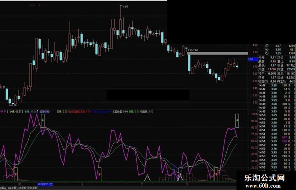 短线:(CLOSE-LLV(LOW,N))/(HHV(HIGH,N)-LLV(LOW,N))*100,COLORMAGENTA,LINETHICK2;