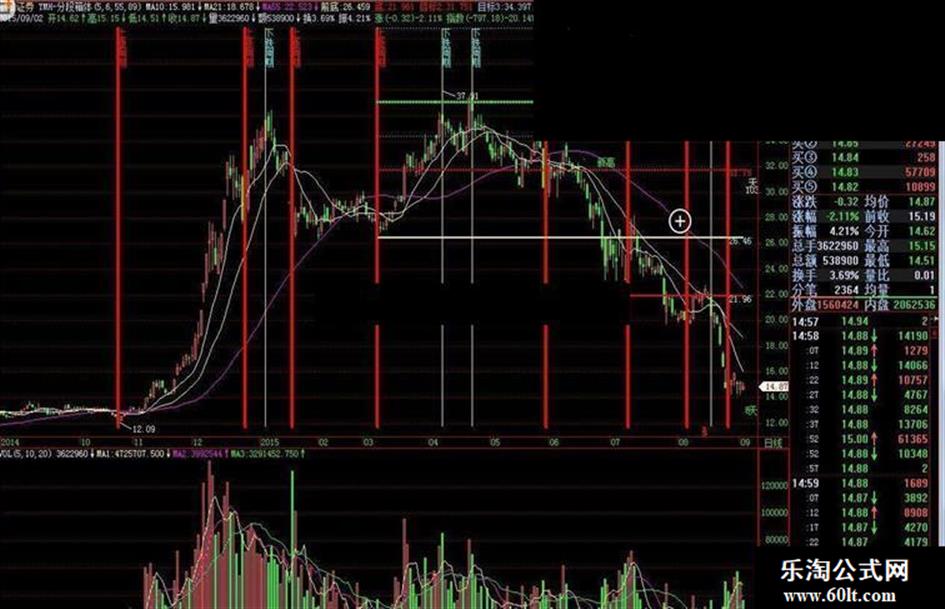 DRAWTEXT(V2,HIGH*1.09,'下\n跌\n周\n期 '),ALIGN4,colorFFFF10;