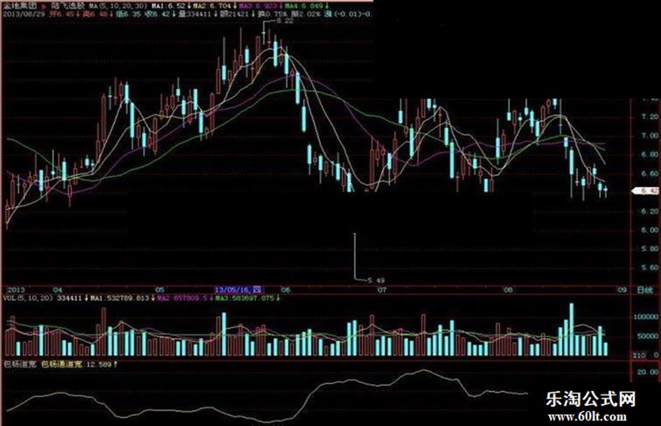 包杨通道下:=MA(CYS7,20)-1.732*STDP(CYS7,20);