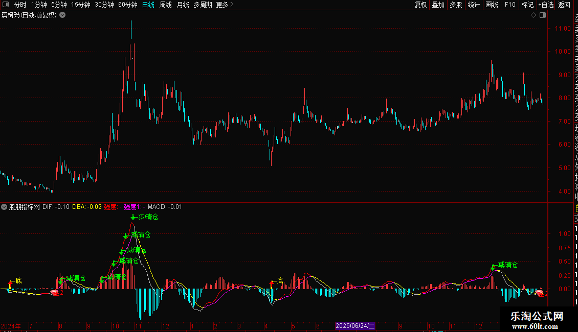 DRAWTEXT(顶, DIF*1.1,'←减/清仓'),COLORGREEN;