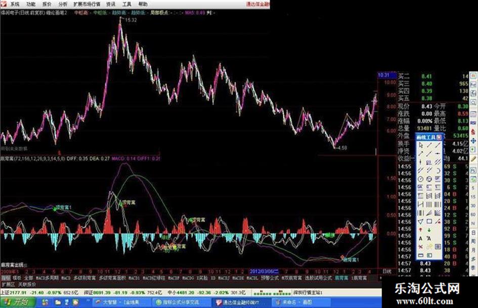 用法如下:1.MACD黄白线顶,底背离.