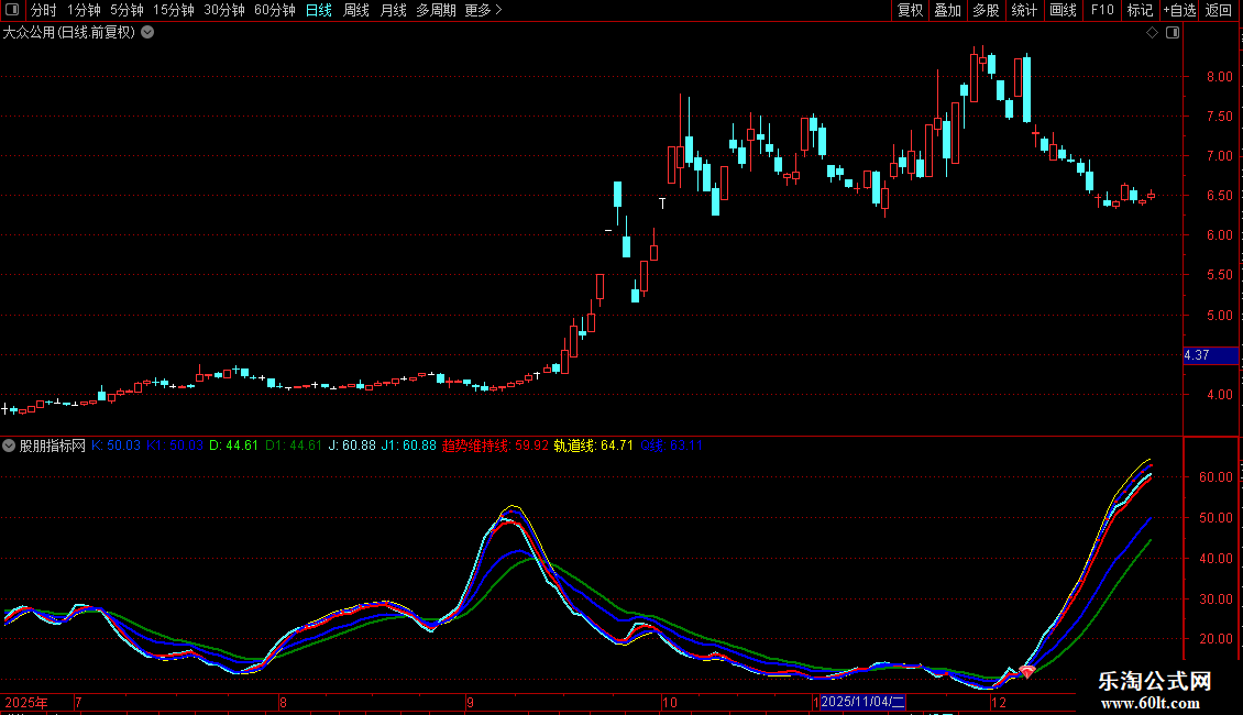 轨道线:(J+REF(J,1)+REF(J,2)+REF(J,3))/4*(K/D) COLORYELLOW;