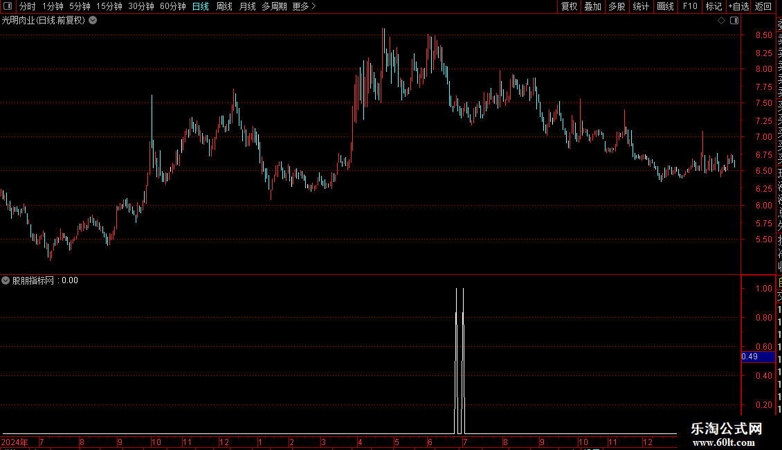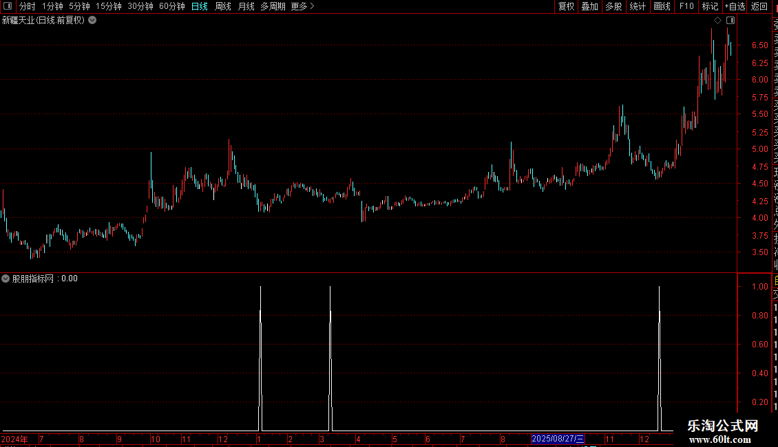 指标通过价格与高低点关系计算动态阈值,结合移动平均与交叉信号识别超跌反弹机会。当V4上穿零轴且V2低于40时触发买入条件。