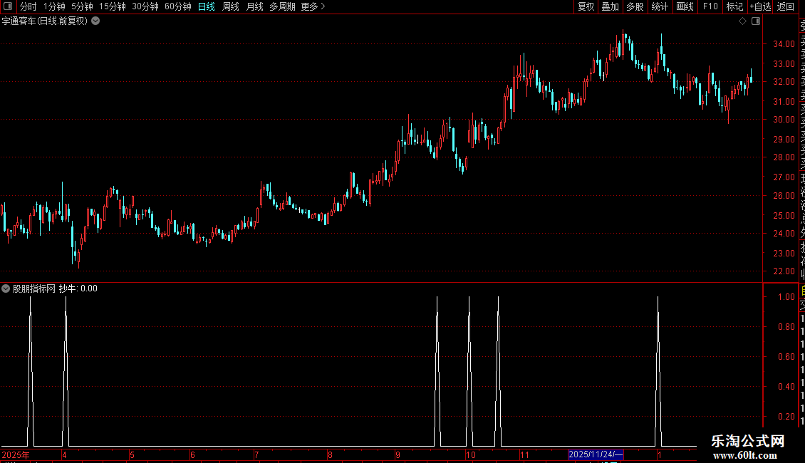 指标名为“抄牛”,用于识别潜在的底部买入与趋势启动信号。