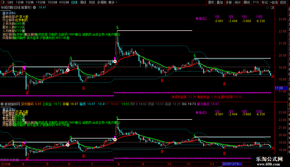 1. 基本信息显示:在左上角固定显示品种类型、所属行业、上市天数、股东人数、人均持股、地区板块、概念板块和风格板块。