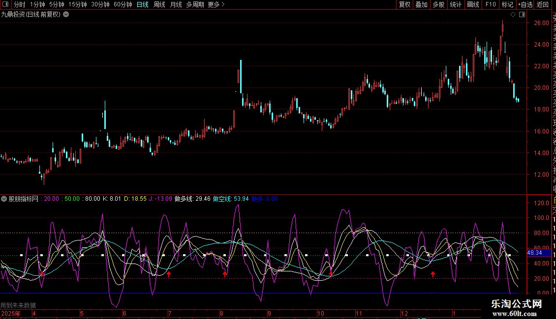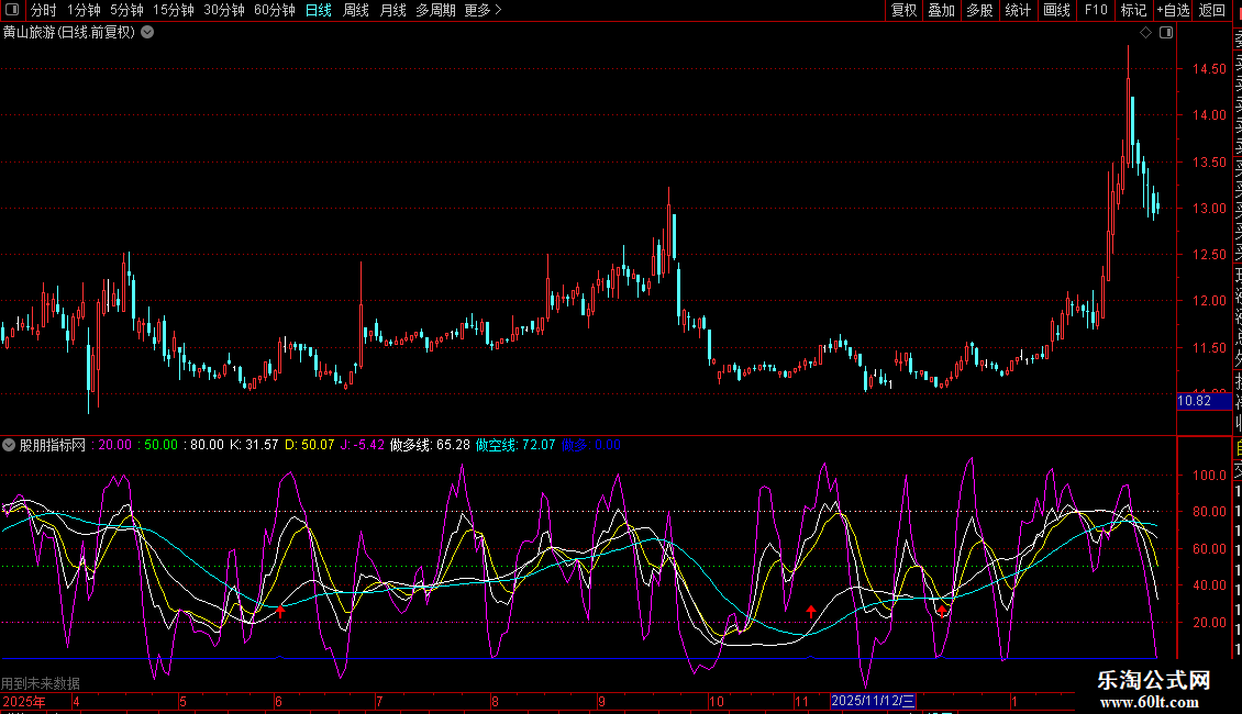 3. 动量确认:整合了标准的KDJ指标(K、D、J线),用于衡量价格动量和寻找背离。