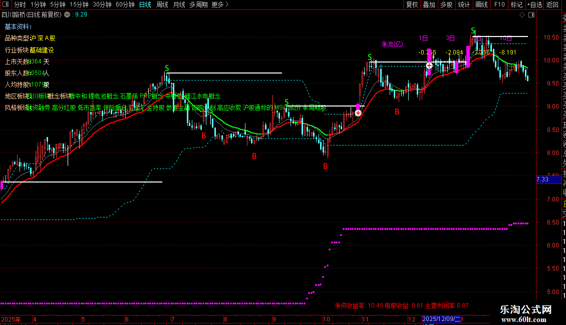 1. 基本面信息面板:在K线图左上角固定显示股票的关键基本面数据,包括品种类型、所属行业、上市天数、股东人数、人均持股、地区板块、概念板块和风格板块。右上角显示净资产收益率、每股收益等财务指标。