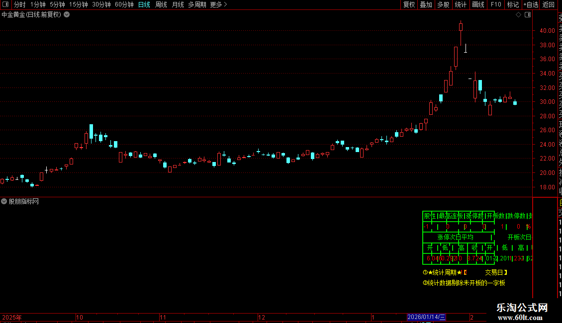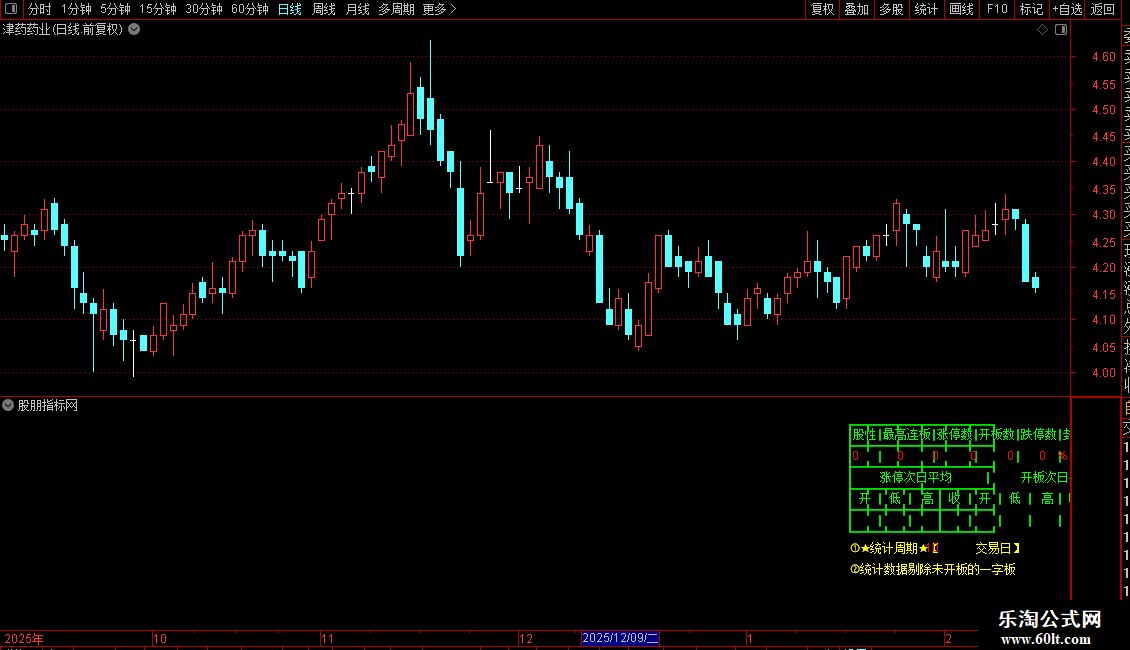 指标用于分析个股的涨停板相关数据。它在K线图右上角绘制一个固定表格,统计指定周期内(默认10个交易日)的涨停表现。