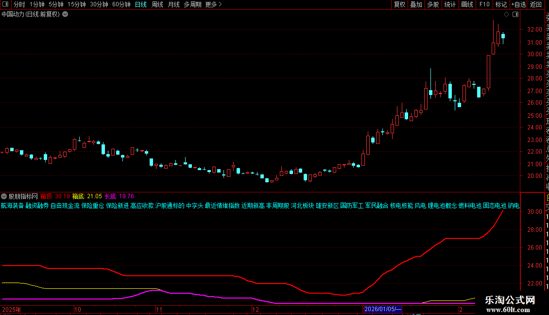 箱顶:HHV(MA((CLOSE),5),30)COLORRED,LINETHICK2;