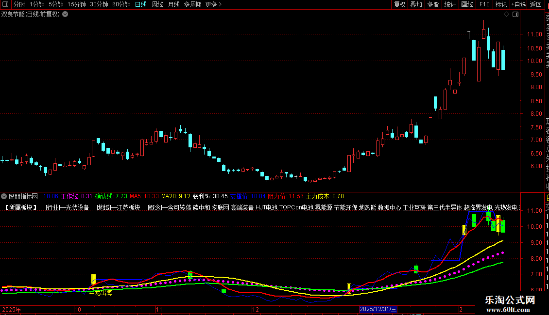 3. 多周期均线系统:包含5日、20日短期均线,以及40日(工作线)、62日(确认线)中期均线,用于判断趋势和支撑压力。
