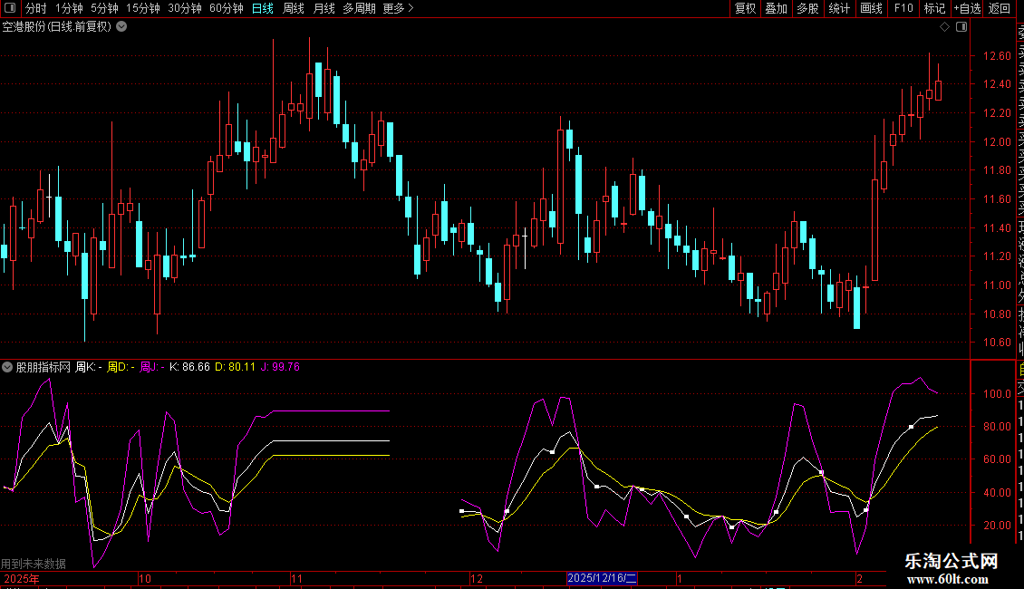- 通过不同颜色区分K、D、J线,并用文字标注周期。