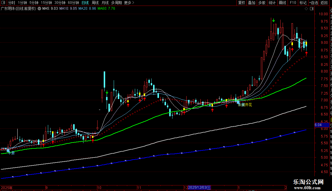DRAWTEXT(MA3>=REF(MA3,1) AND MA1>=REF(MA1,1) AND CROSS(C,MA3),L-0.13,'牛象'),COLORFFCC66;
