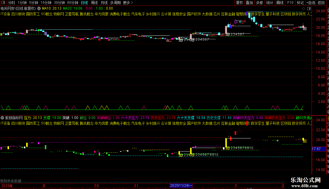 1. 信息显示:在K线图左上角显示股票所属行业、地域和概念板块。