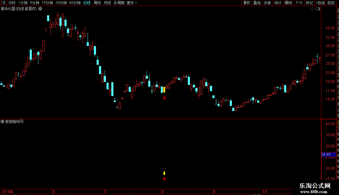 副图指标:加载后,当出现黄色高亮K线及底部图标时,提示关注。