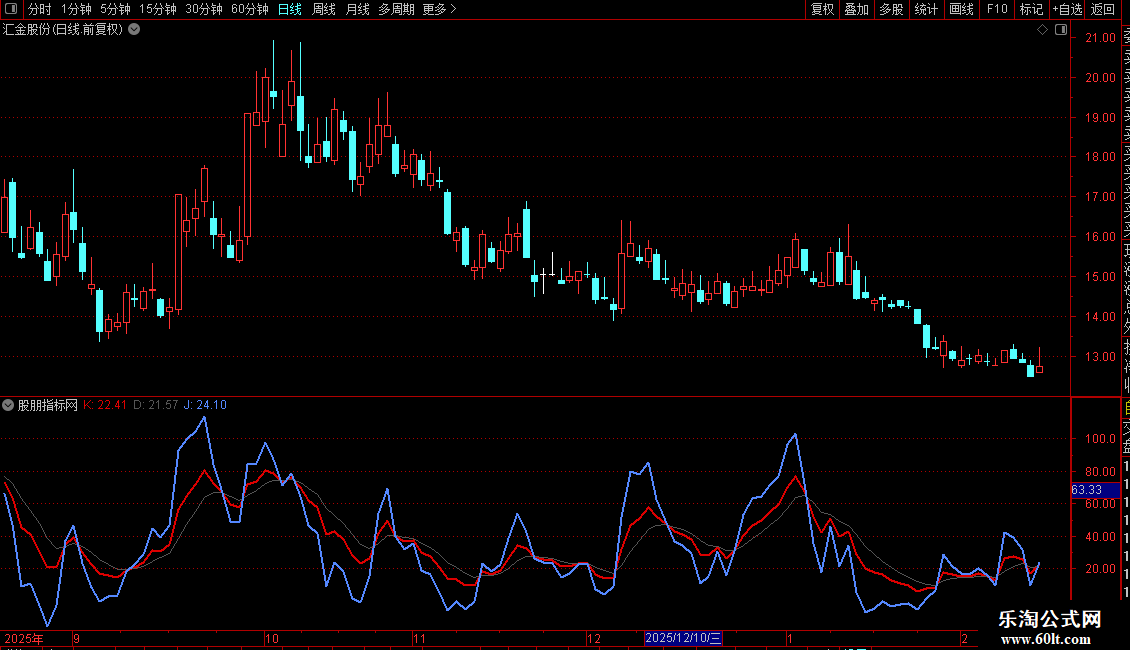 - 彩色标记线:当J值低于10或高于80时,以黄色高亮显示,提示超卖或超买区域。